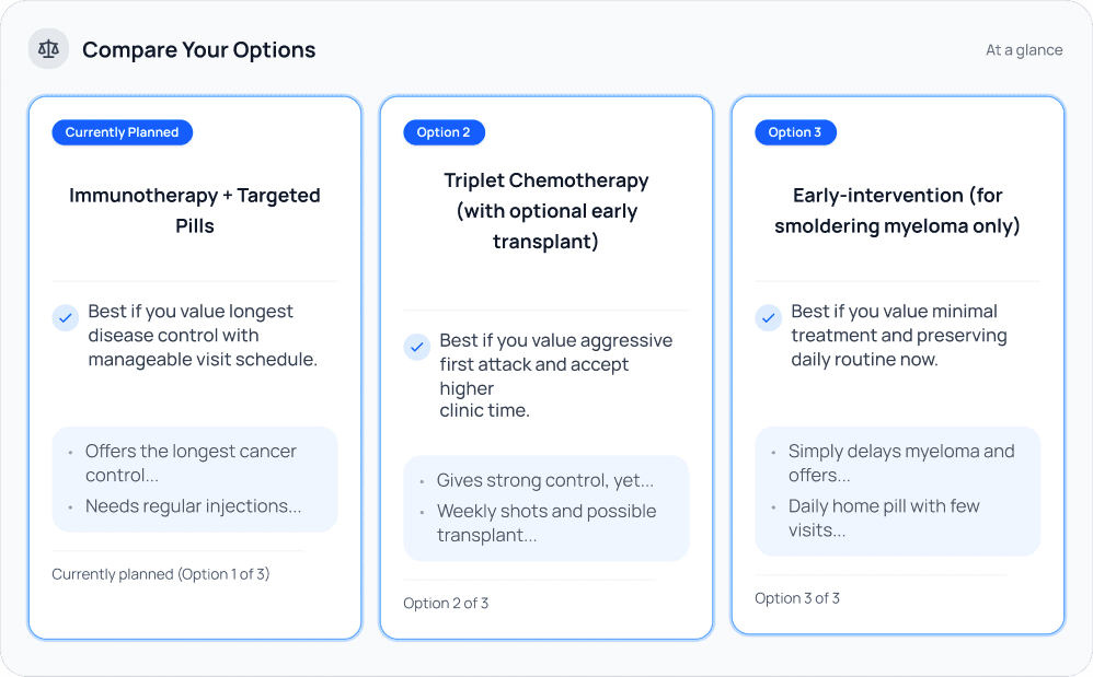 Radical benchmarks your diagnosis and treatment responses against millions of historical cases from top hospitals to highlight paths with the strongest real-world results.