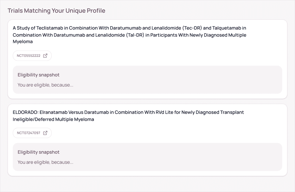 Radical analyzes your diagnosis, biomarkers, and treatment history to surface clinical trials that match your profile—expanding access to research-based options beyond standard care.
