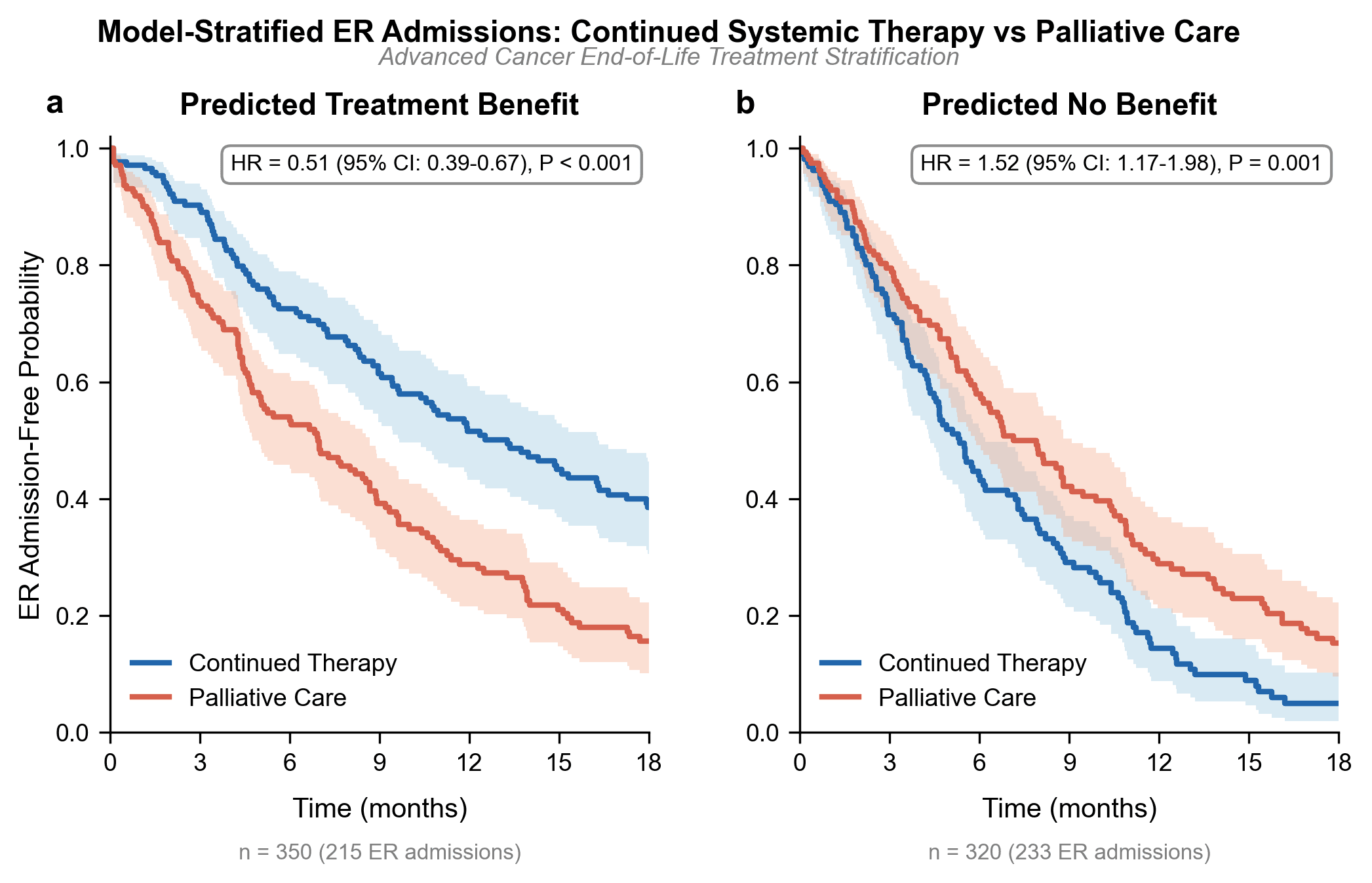 Outcome of interest: e.g., OS at 12 months, hospitalization within 30 days, grade ≥3 toxicity, treatment discontinuation